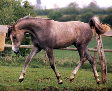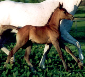 Parisa's sire is the typey "trotting machine" Padishah - a straight Russian Stallion, who in the Showring has the following results: European res. Champion, World Top Ten Stallion, French National Champion, Champion Stallion in Holland, and Supreme Champion & Gold Ribbon in Aachen. Padishah was bred by State Stud Tersk, and is now owned by Sabine & Dominique Akel, Cedar Oak Arabians, France. He is a very handsome and correct stallion, who before his success as a Show horse, was tested at the racetrack. And most important Padishah has proved himself as an outstanding sire - his offspring has magnificent type, body and movements.