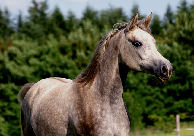 ML Parisa's dam is our beautiful and very charismatic broodmare Primonia. She is a "strong" powerful girl, who really knows how to present herself with tremendous movements. Primonia was bred in Belgium, but came to Cedar Oak Arabians in France as a 3 year old and produced 5 excellent foals for the stud before we imported her to Denmark. Primonia's offspring is lovely typey Show prospects, but they are also splendid performance horses, 3 of the ones born in France are doing very well in endurance, dressage etc. At ML ARAB she until now has produced 5 superb foals, all of them with great type and lots of "look at me" attitude, they are well-build and very muscular with the famous big elastic "Russian movements". Primonia is an International Show Class winner herself and some of her offspring also had nice results in Shows. Primonia has her own page on the menu "Mares".